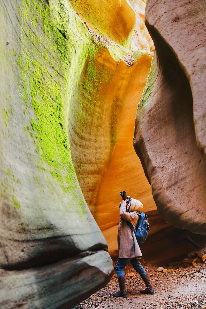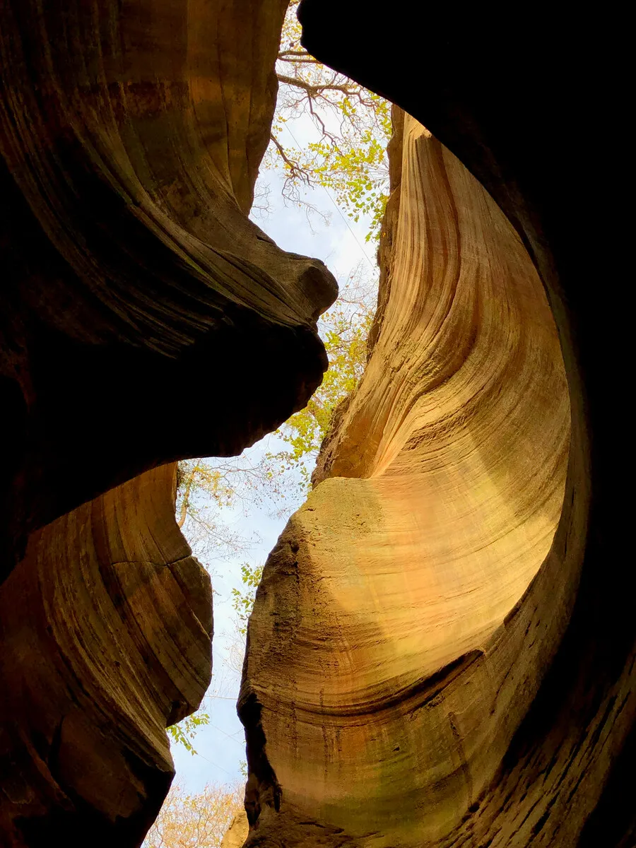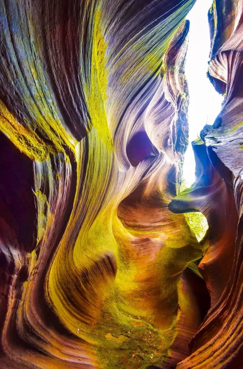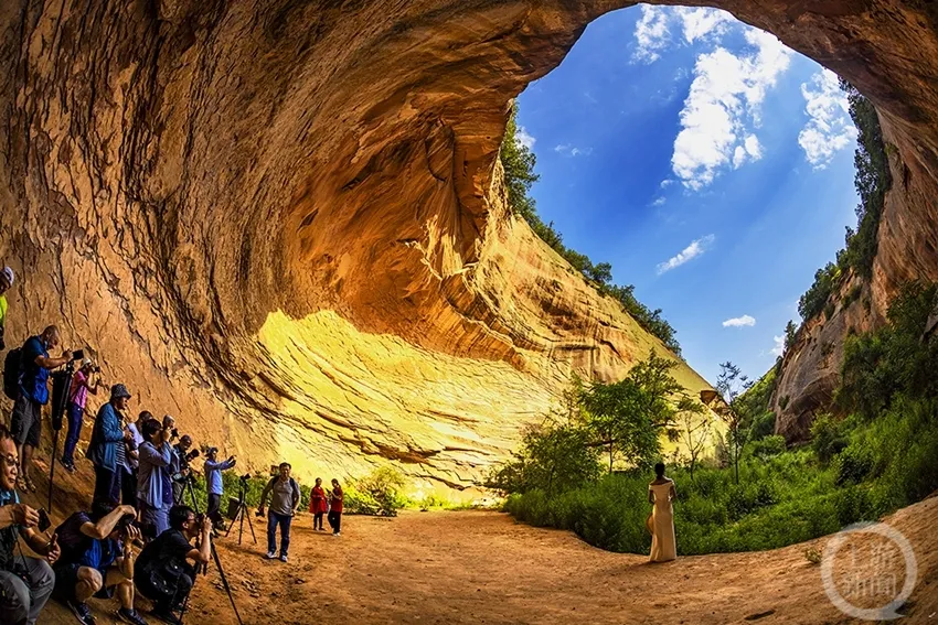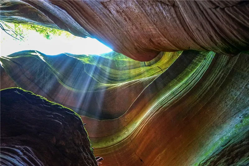 位于陕西省延安市甘泉县雨岔村,大约在亿万年前,陕北曾发生过一次强烈地震,黄土大山分开一条条裂缝,有宽有窄,后经暴雨导致山洪暴发,地表被切割和冲刷后慢慢形成这样独特的峡谷地貌。这也是我们今天看到的甘泉峡谷,都说与美国的羚羊大峡谷极其相似。走进峡谷,峡壁呈现凹凸不平,线条流畅,如波浪从你身边划过,宽的地方几人并排可行,窄的地方只容一人过去,专家称为“黄土高原自然地缝奇观”,属于陕北独一无二地质美景!